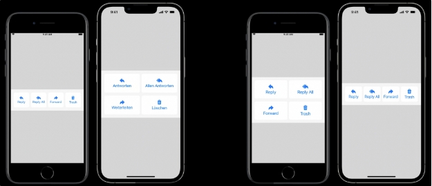 언어에 따라 상응하는 언어보다 길거나 짧고, 항상 앱의 레이아웃에 영향을 미치게 된다.
